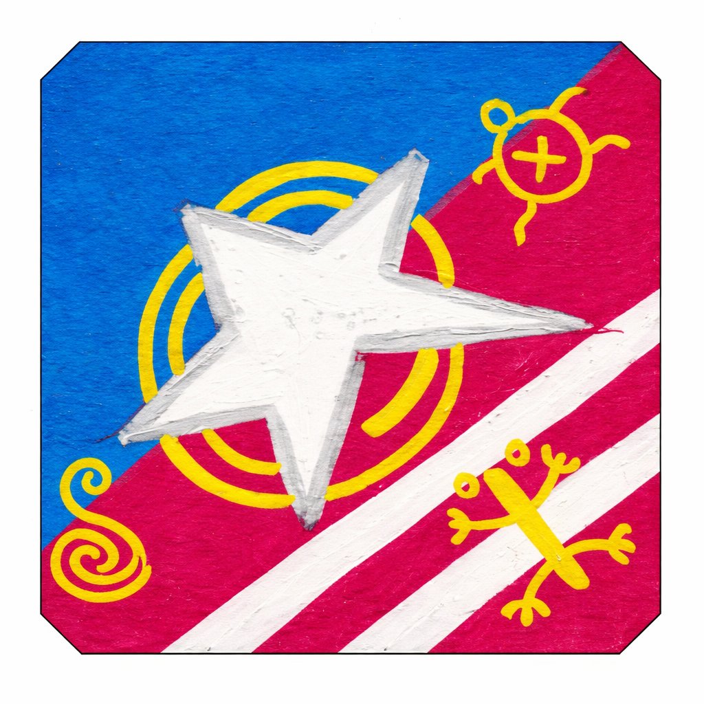 The symbols in this painting include the snail, coqui (frog), turtle and frog. The Puerto Rican flag is represented in this tribal painting by Orquidia (Orchid) Rivera Ramos Arman! The frame is included for free and has ways of hanging it in the back. 4 x 4 inches. Only currently shipping within the U.S and Canada.